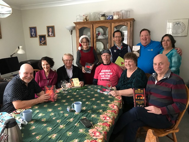 We all enjoyed brunch at former member Rob Hawton’s home and then had our annual book exchange. Each of us went home with a surprise book recommended by another club member. We will report back in January and see who has read the books and whether we agree with the recommendations.