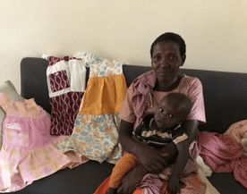 The lady in the blue jacket has two children, was formerly begging for food door to door around the mission compound. She now makes aprons, bags, purses to sell in the visitor’s gift shop, and does mending etc … again making 2 $/d. The lady sitting with baby below is from the first class (she graduated 2 years ago). She and one of her classmates cleverly took a sewing machine to a nearby boys boarding high school and they walk there every day to do mending , repair zippers , rips, etc…. and they earn $5 each x 6 days a week!
